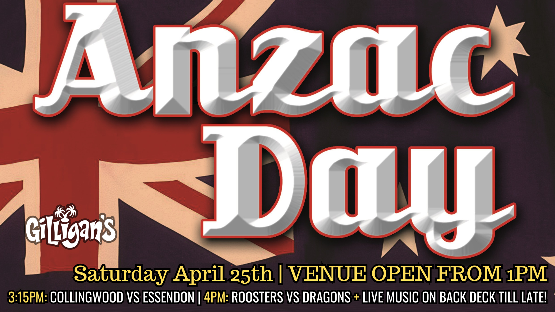 Every Sunday from midday Gilligan’s boasts the biggest and best pool party in town and everyone is invited! Guest and local DJ’s mix it up poolside. When the sun goes down the party continues with live music and beverages on the back deck.