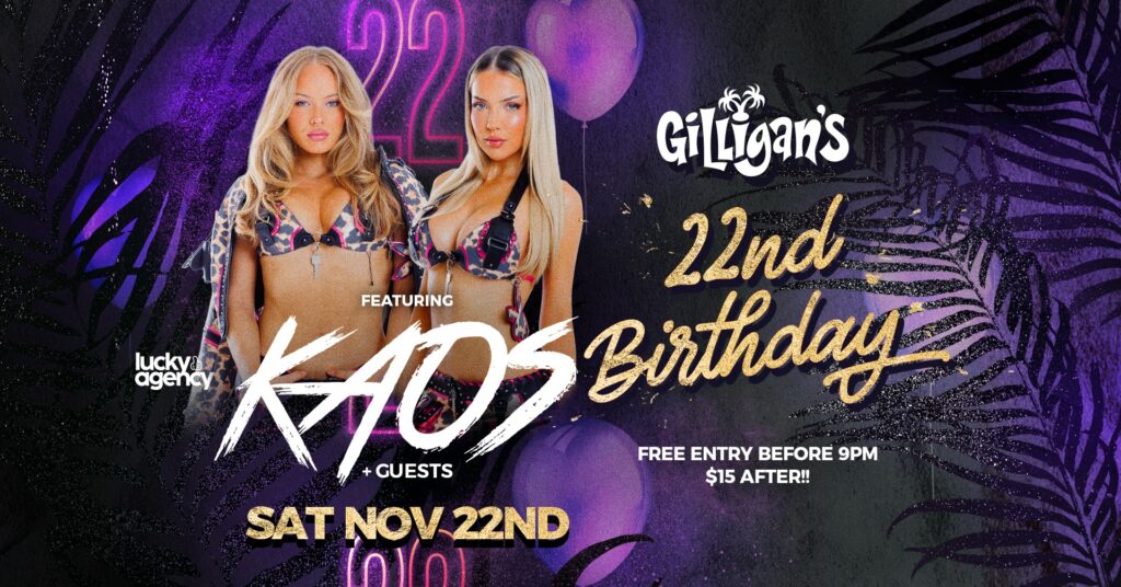 Gilligan’s is celebrating 22yrs of good times & great memories, so we decided to invite our good friends & electrifying duo the KAOS DJ’S + some other special guests