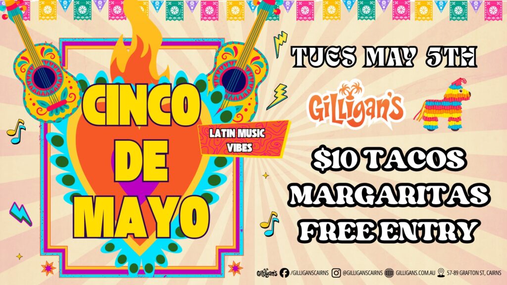 CINCO DE MAYO at Gilligan’s TUESDAY MAY 5TH | LATIN MUSIC VIBES We’re turning up the heat this Cinco de Mayo with a full-blown Latin fiesta right in the heart of Cairns Think colour, chaos, and cocktails, the kind of night where one margarita turns into five and suddenly, you’re dancing like you’re in Mexico […]